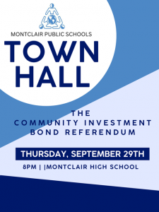 An important $188M Question is on the November 8 Ballot.  Get your questions answered about the Montclair Community Investment at next week’s Town Hall.