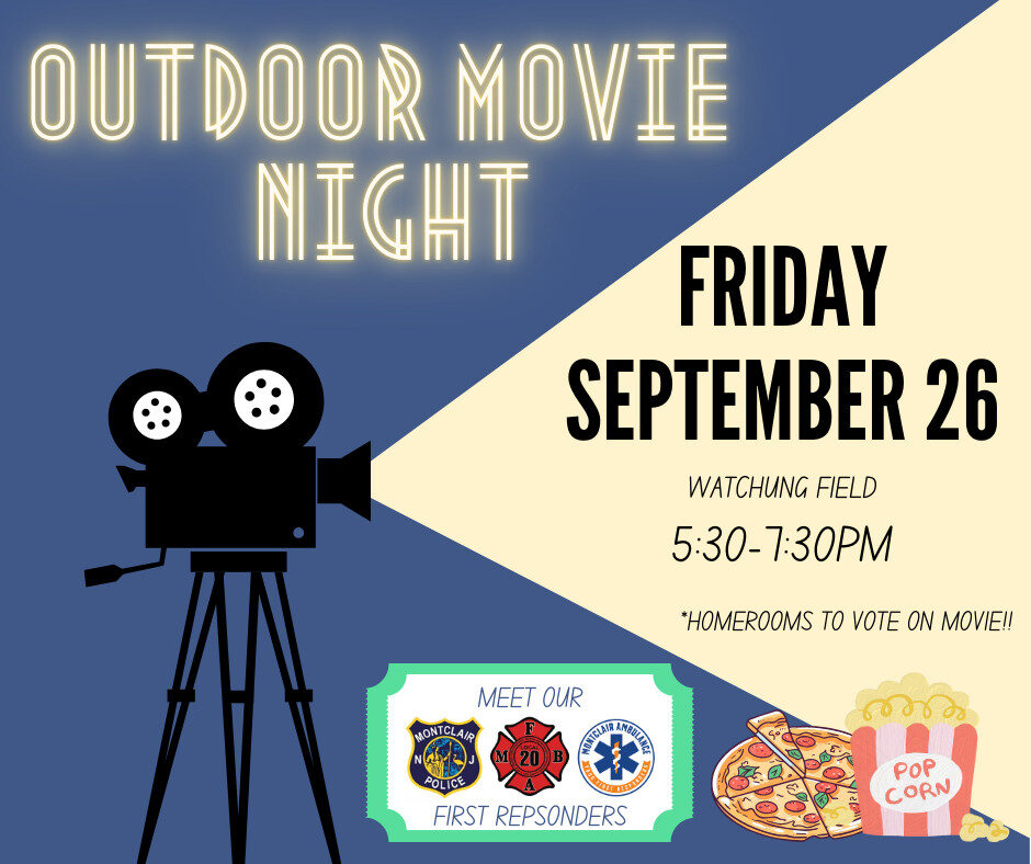 Join us for a night on the Field. Watch a movie with your friends and meet Montclair’s First Responders.