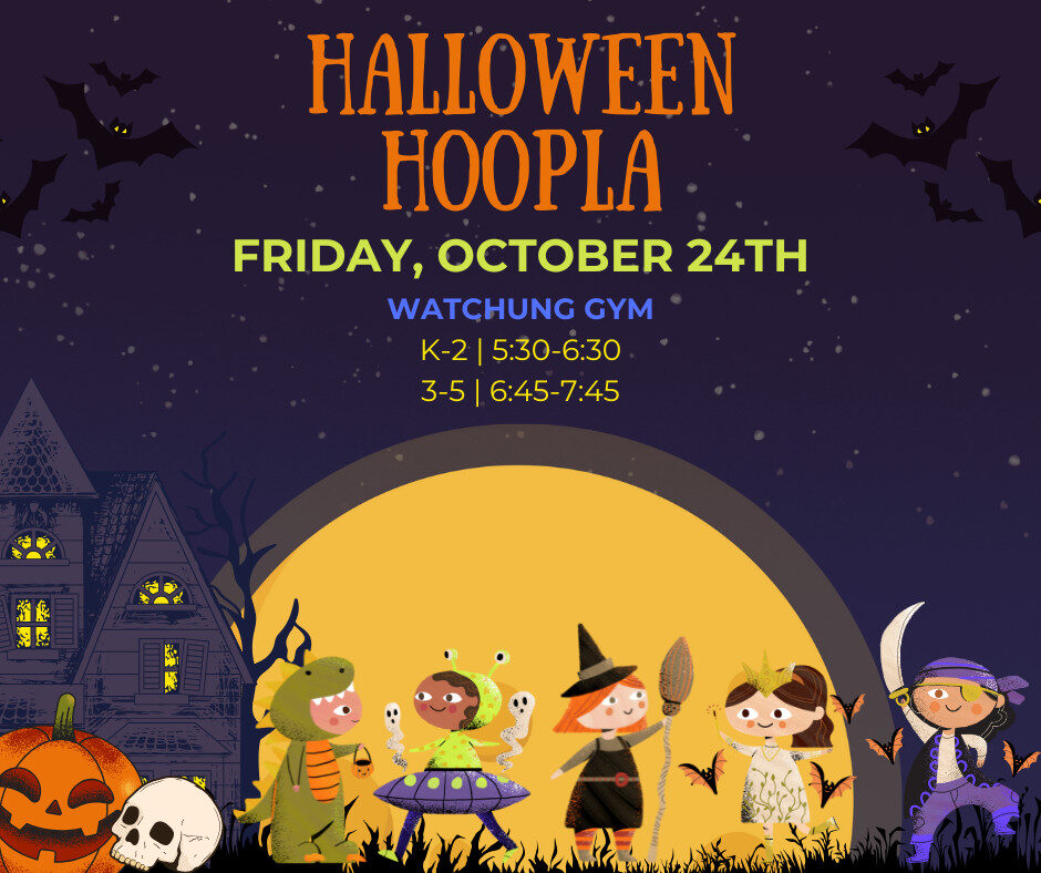 Watchung’s HALLOWEEN HOOPLA is almost here!!! Our gym will be transformed into a Spooktacular event! We encourage families (siblings are welcome!) to join us for this Free event with a DJ, dancing, and games, along with pizza and snacks for sale. Wear your costume if you are feeling extra festive!